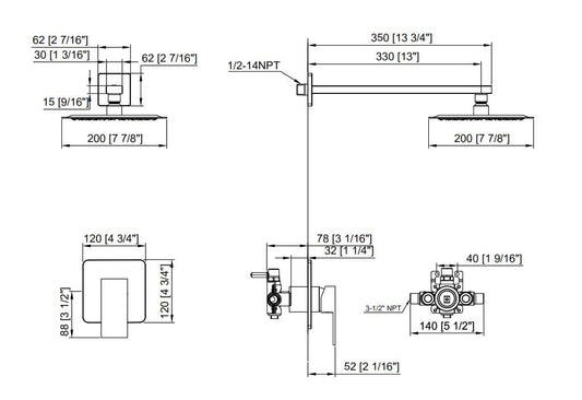 Shower Faucet Set with Rain Shower Head and Mixing Valve-Chrome Polished