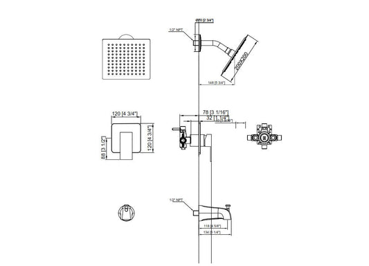 Rain Showerhead and Bath Spout -Matte Black,Square