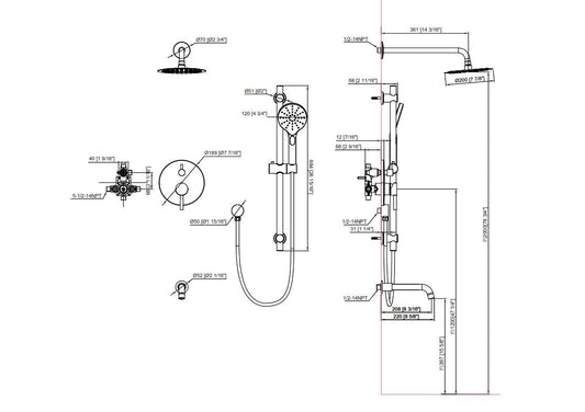 Shower Faucet Set with Round Hand Shower and Rain Showerhead -Matte Black